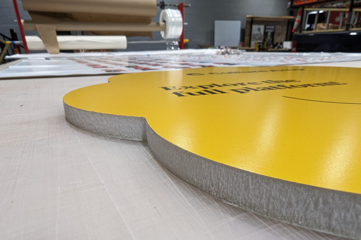 Boards are printed on flatbed UV presses, cut to size, inspected for accuracy, and shipped white-label to your shop or directly to your client.